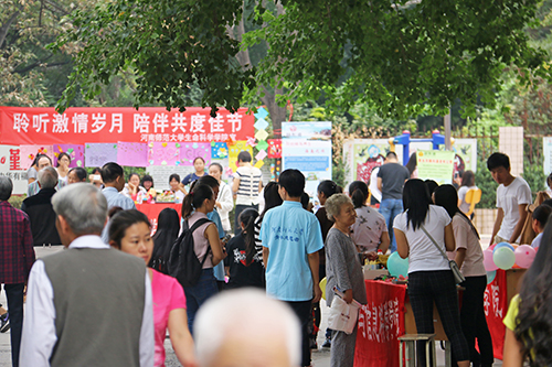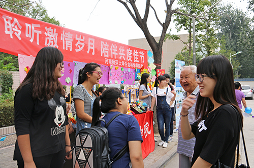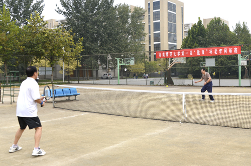 夕阳无限好,人间重晚晴。九九重阳节来临之际,为弘扬中国民族尊老、敬老、爱老、助老的传统美德,丰富我校离退休教职工的精神文化生活,增强广大师生关爱老人、关爱社会的责任感和使命感,我校举行了重阳节敬老系列活动。 “为老服务一条街”活动 9月24日上午,我校离退休职工管理处、校团委、后勤管理处、校医院等单位联合在家属院群体楼前举办了“为老服务一条街”活动。 活动中,各学院学生志愿者精心布置摊位,结合各自专业和个人所长,为老人们准备了剪纸、戏曲、书法、棋艺、按摩、中国结教学、歌舞表演、义务维修、人像速写、赠送免费水果、养生知识讲解等慰老服务。后勤处则摆起摊位,为老人们免费刨案板、低价售卖季节性鲜花。校医院和牧野区社区卫生服务中心组织医护人员为居民免费测量血压、讲解疾病预防知识。宜家家政公司、新乡市有关养老机构、师大生活超市等企业也在现场为老人们提供了便民利民服务。 (大学生记者 郭俊洋 王啸啸/文 余敬欣 周伟涛/图) 举办第一届“健康杯”老年网球赛 9月24日至25日,我校第一届“健康杯”老年网球赛在网球场举行,本次活动由离退休职工管理处主办,校体委、体育学院协办。经过为期2天的激烈角逐,参赛选手朱小平、王建军获得本次比赛的双打冠军。校党委书记郑邦山参加闭幕式,并为获奖队员颁发证书。 赛场上,参赛选手挥拍发球、配合默契,比赛高潮迭起、精彩不断。参赛离退休职工本着“友谊第一,比赛第二”的原则积极参赛,展示了阳光的心态,打出了“夕阳红”的风采,达到了增强体质、增进友谊、互相学习、共同提高的目的。 ( 离退处 樊莉霞 大学生记者 张燕燕/文 大学生摄影记者 余敬欣/图) 九九重阳节戏剧专场