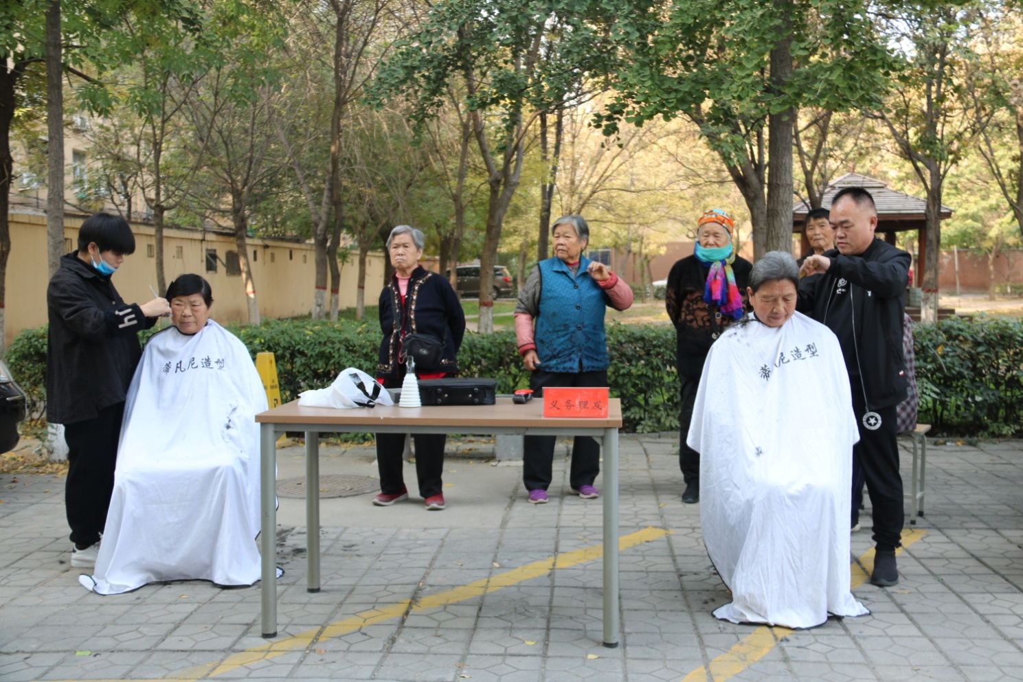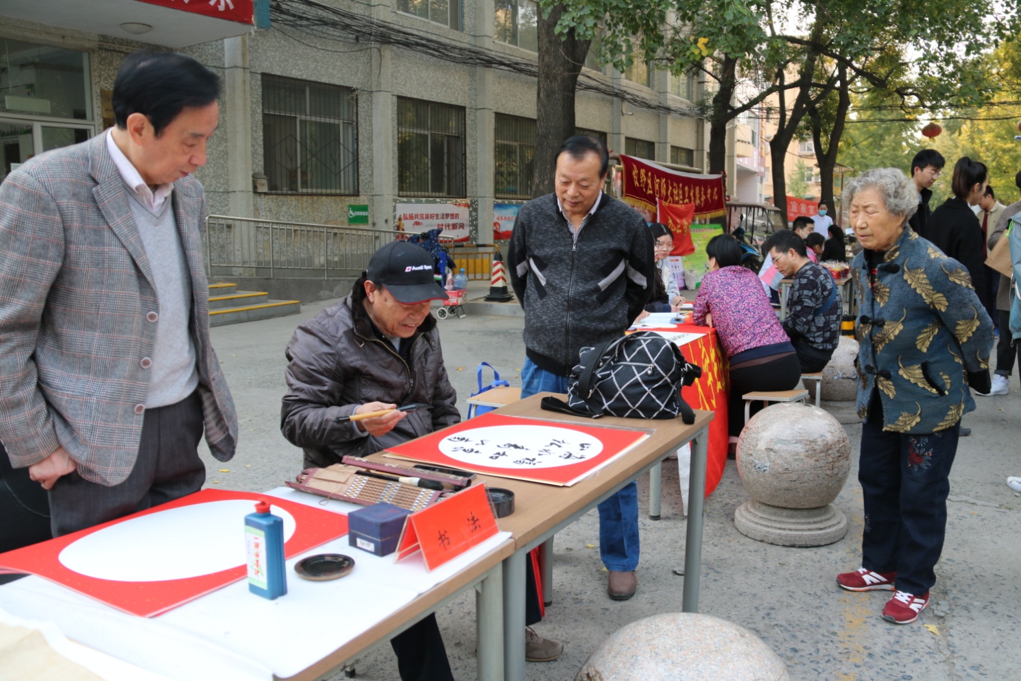 活动中,离退休职工书法协会组织书法家书写祝寿书法,主题鲜明,风格各异,篆、隶、草、行、楷等书体,“家和万事兴”、“健康长寿”等内容应有尽有,精彩别致;后勤处也摆摊设点,为老人们免费刨案板、以低价出售鲜花、粮油及调料等生活必需品;校医院、牙科诊所组织医护人员,为老年人测量血压,讲解疾病防治知识;法学院法律援助中心的志愿者们,结合专业优势提供法律援助、讲解法律知识;理发师赵友也发挥团队力量,为离退休老同志义务理发;还有几个家政公司,为老人们提供家政服务。