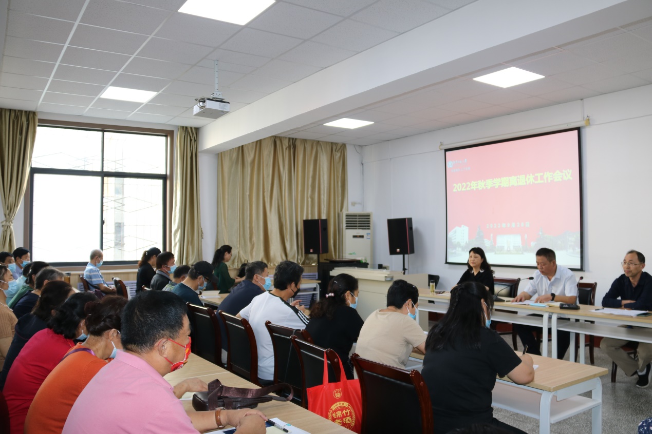 杨海山传达了学校新学期工作会议精神,回顾总结了2022年上半年的离退休工作并重点从四个方面就下半年离退休工作做出部署:一、认真组织开展喜迎二十大系列庆祝活动和丰富多彩的文体活动;二、做好重阳节走访慰问系列活动;三、毫不松懈抓好常态化疫情防控工作;四、持续加强队伍建设,提升管理水平,提高服务质量。