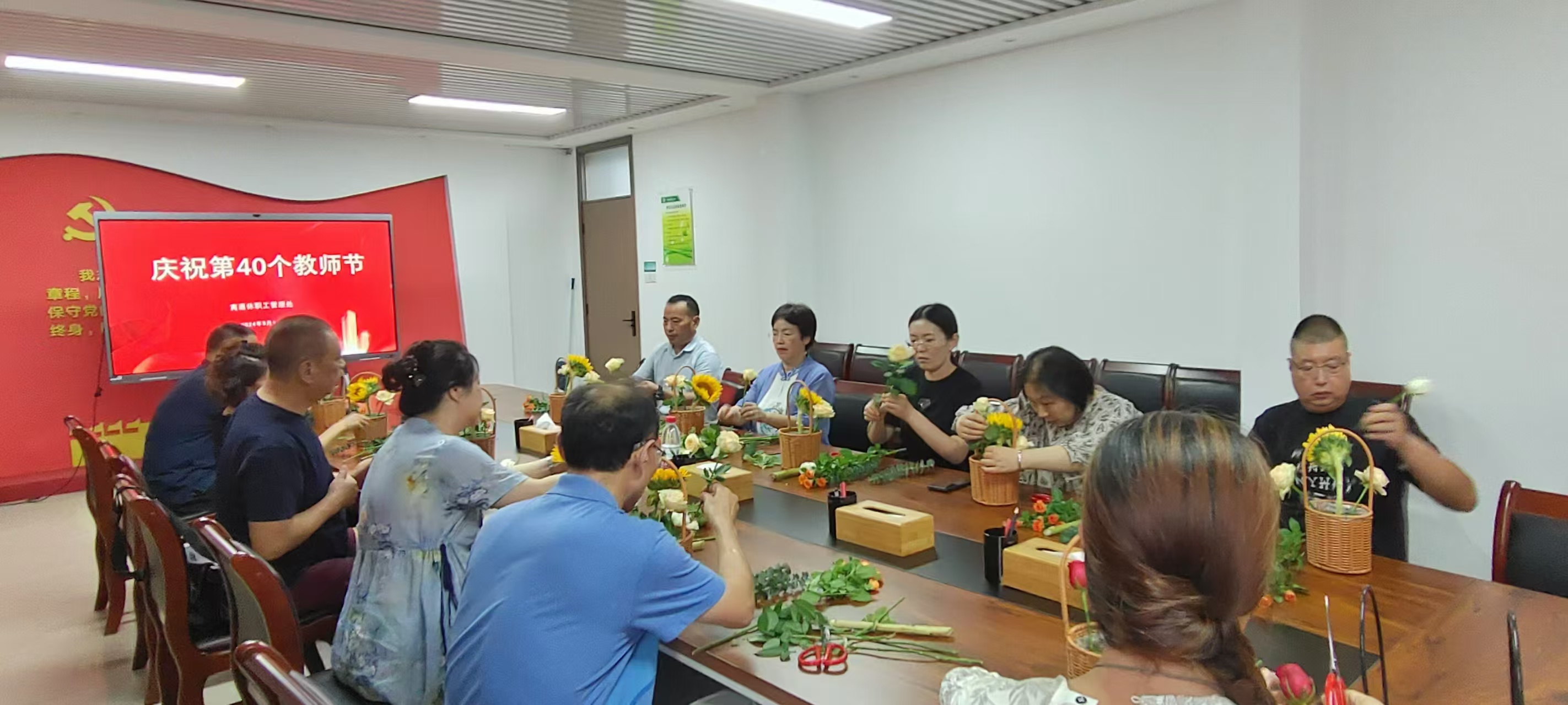 为庆祝第四十个教师节,大力弘扬教育家精神,进一步营造尊师重教的良好氛围,9月10日下午,离退休职工管理处分工会在党员活动室举办教师节插花活动,离退休职工管理处全体职工参加本次活动。