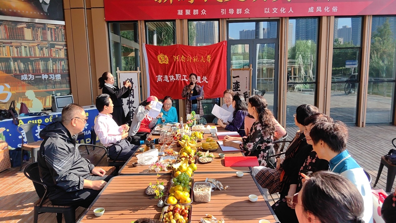 9 24 日,老年大学朗诵班的学员们走出教室,来到户外,在定国湖畔举办了一场别开生面的户外朗诵沙龙活动。