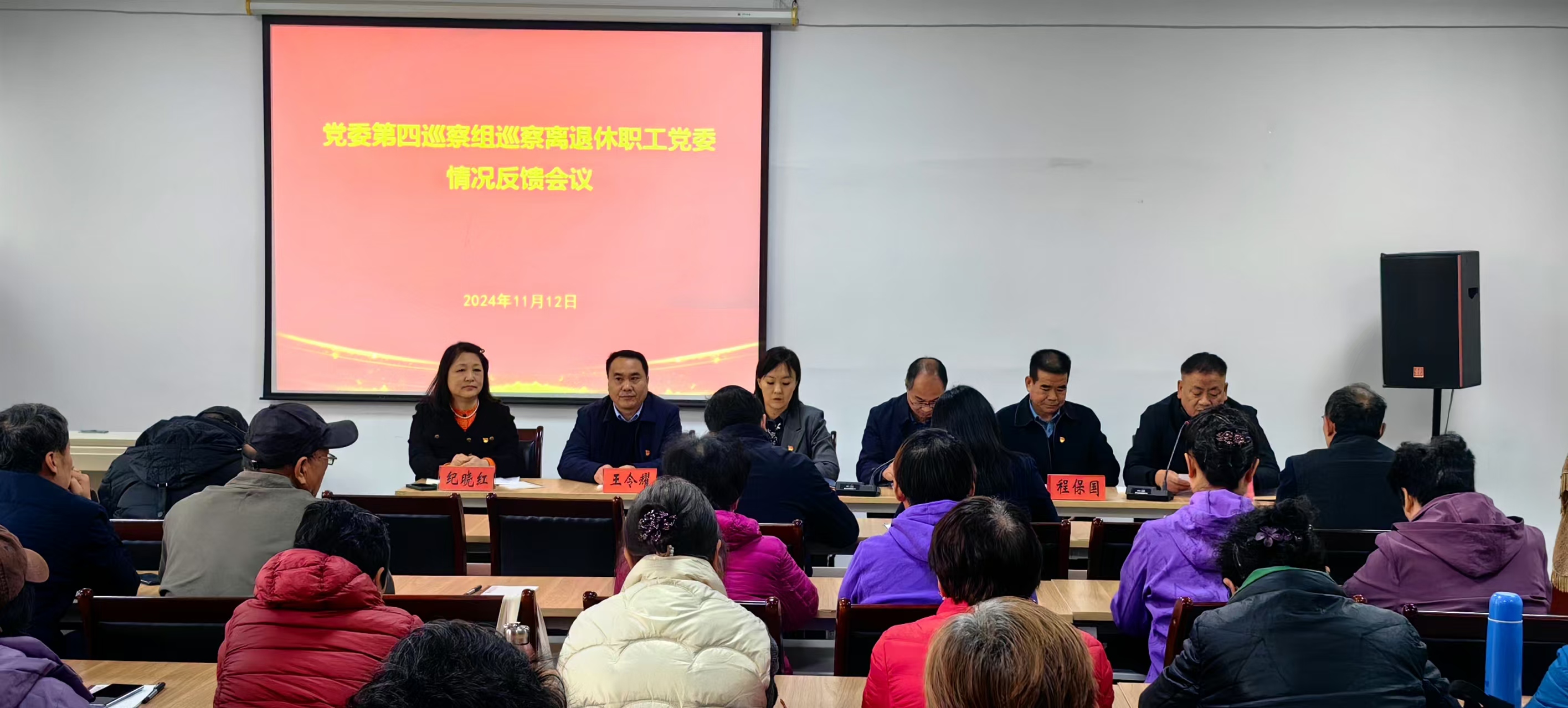 按照学校党委巡察工作部署,11月12日,党委第四巡察组巡察离退休职工党委情况反馈会在群体楼老年大学教室召开。校党委常委、副校长杨玉珍,党委第四巡察组组长、电子与电气工程学院党委书记高飞,党委巡察办正处级巡察专员程保国,党委组织部副部长王令耀,党委第四巡察组成员、离退休职工管理处领导班子成员、党委委员、全体职工、各支部书记及委员参加会议。会议由离退休职工管理处处长杨海山主持。