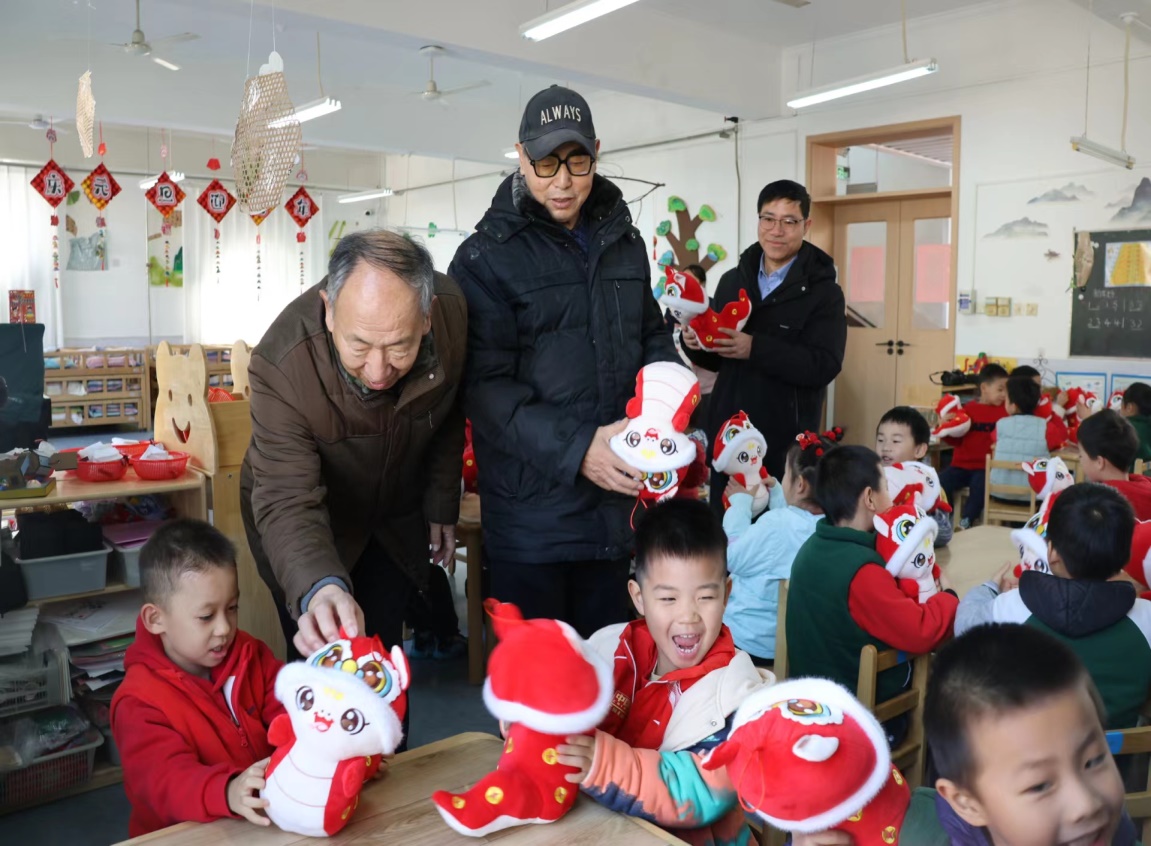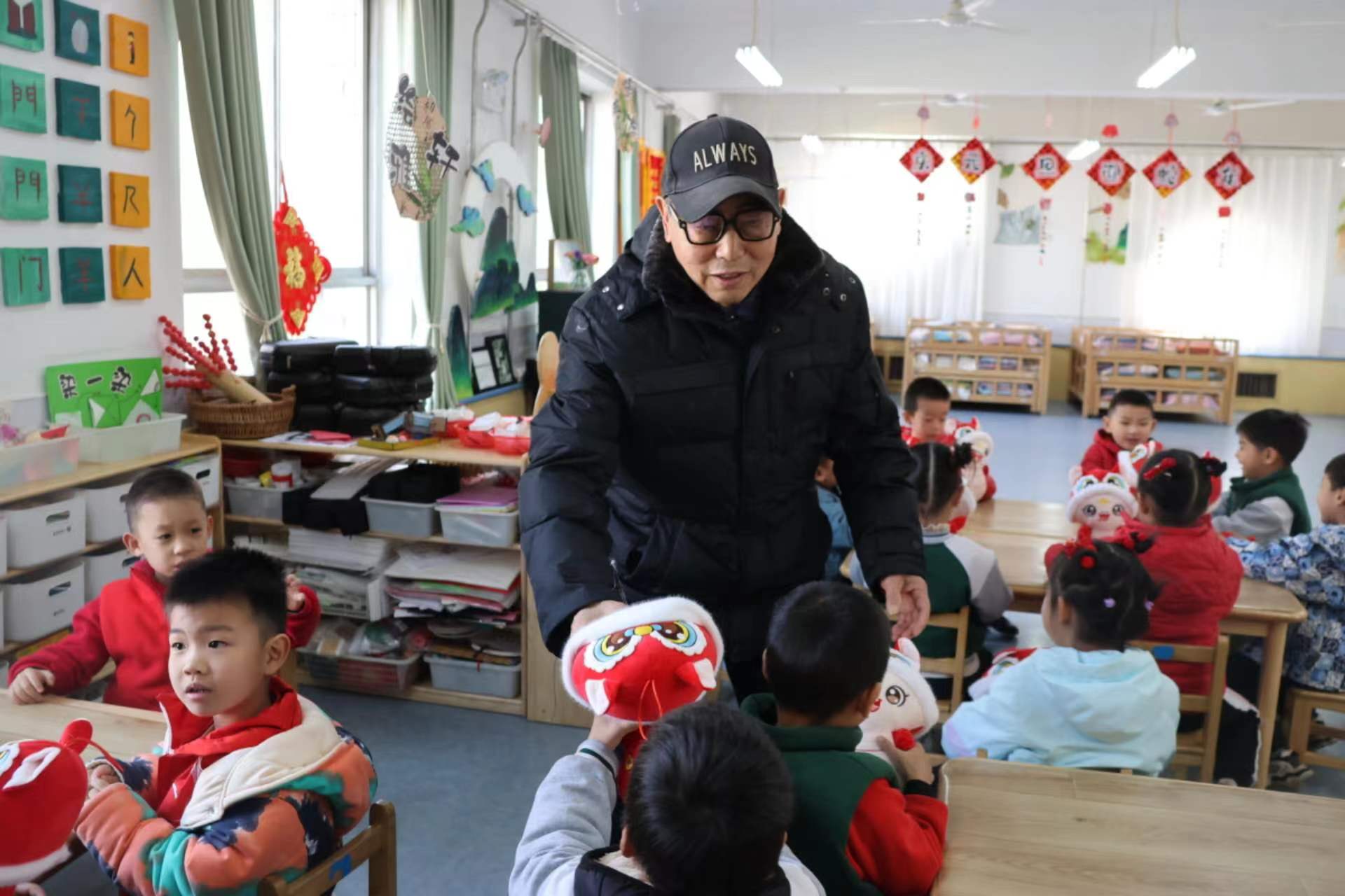 赵长新一行参观了孩子们的学习、生活环境,并为每个大班的小朋友送上精美的新年礼物。赵长新亲切地询问他们吃的好不好?玩的开不开心?学习听不听的懂?长大想干什么?耐心地引导他们要好好学习,长大实现自己的梦想,为国家多做贡献。他感谢幼儿园为孩子们创造了安全、温馨、舒适的成长环境,感谢老师们的辛勤付出。他说,作为孩子们成长道路上最初的引路人,你们责任重大使命光荣,在新的一年即将开始之际,我们代表校关工委向全体幼儿园师生致以诚挚的节日问候。他表示,让我们共同携手为孩子们培育成长的沃土,托起祖国的未来。