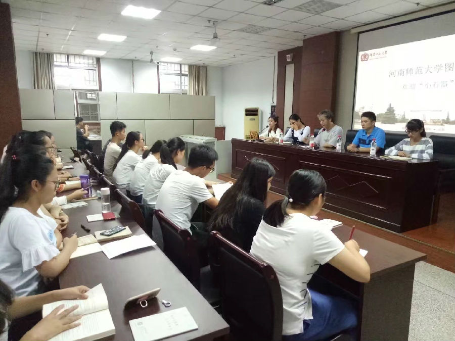 图书馆苏全有馆长表达了对新生馆员的热烈欢迎和衷心的祝贺。他简单介绍了图书馆的发展历史,图书馆的工作职能和服务理念以及科研创新等方面的情况,并对新入学生馆员提出了殷切的期望:“学生馆员因为一个共同的爱好——读书,懂书,爱书,走到一起。这就是读者协会以及学生馆员的灵魂所在,让每一个拥有书魂的人来到这里,共同探讨读书感,交流思想,沟通心灵”。接着学生工作部胡玉文老师表达了对同学们到来的欢迎和对同学们的祝福,希望同学们工作的开心,生活的幸福,尽快融入图书馆大家庭。最后读者协会会长杜曼同学和副会长高乐姣同学就学生馆员的具体工作做了部署。
