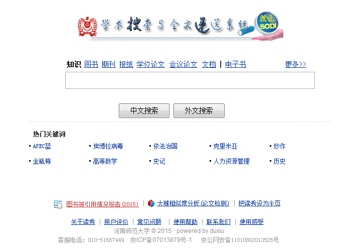 我们熟悉的“读秀学术搜索”的界面又出现啦。。。