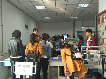二是毕业生赠书回馈活动。刚刚离校的2015届毕业生向我校图书馆捐赠了7000余册图书,在活动现场读者凭有效证件(学生证、一卡通)可免费领取1册(套)图书,活动开始之前图书馆前已经排起了整齐的长队。由于图书量大,现场人员众多,在图书馆实习的数学学院的同学们协助老师维持秩序,组织活动,也是读者角色转换的一种体验。到场读者积极挑选并领取自己喜欢的图书,对已经毕业的学长的赠书行为表示赞赏和感谢,赠书回馈活动在宣传资源循环利用理念的同时也连接了各届学生之间的感情。