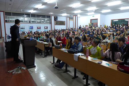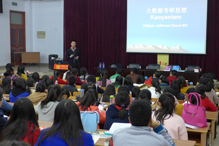 在讲座中,余浩老师以两个专题《大数据考研思想》和《四六级真相》分别介绍了考研英语和英语四六级的出题思路,深度解密了考研英语和英语四六级的真相,揭示了二者的区别,并对如何备考做出了指导。整个讲座中,余浩老师风趣、幽默的语言,不时引发在座学生的阵阵掌声。余浩老师还与学生进行了互动交流,气氛异常活跃。