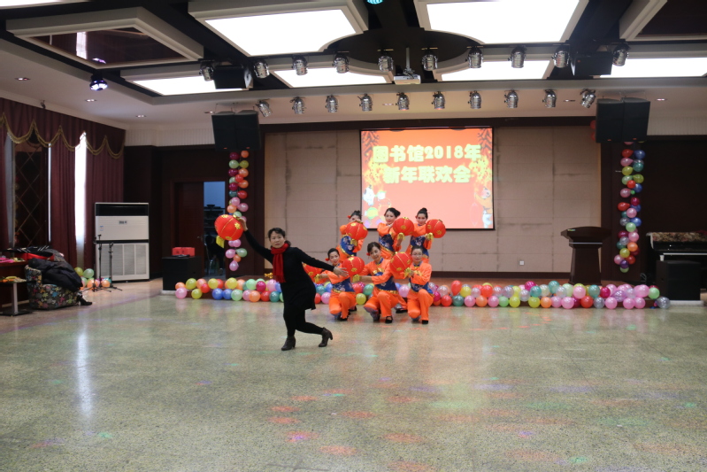 整场联欢会节目形式多样,内容丰富,舞蹈、诗朗诵、小合唱、情景剧等轮番上场,游戏环节更是高潮迭起,欢乐的气氛蔓延到会场的每一个角落。联欢会在温婉柔美的开场舞《开门红》表演中正式拉开序幕。接下来的节目更是精彩纷呈,高潮迭起,老师们活力四射,充满激情,各显其能,展示风采。党政领导改编合唱的《亲爱的朋友来相会》,让人耳目一新;流通部的诗朗诵《有一首歌》大气磅礴,是那么令人感动;地方文献中心的小品《生产救灾度荒年》深具朴实的乡土气息;采编部的舞蹈《踏古》《凉凉》服装鲜艳,姿态优美。二十多个精心准备的节目将联欢会气氛推向一个又一个高潮,其中穿插的游戏更是充满趣味性。最后,联欢会以魏书娟的独唱《莫忘今宵情》和期刊部的配舞落下帷幕,大家用各自不同的方式共同抒发着对图书馆的无限热爱,对美好事业的向往和憧憬。