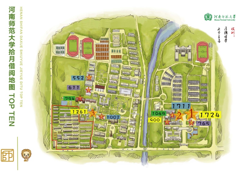 为响应党的十九届四中全会提出的构建服务全民终身学习的教育体系,促进我校全民阅读深层次发展,图书馆基于大数据推出我校“借阅地图TOP TEN”。根据我校25个学院(部)每月借阅情况,选择前十名在我校地图上进行标注。每月发布一次,可使各个学院及时了解本学院每月学生的借阅情况,促进学生培养工作。