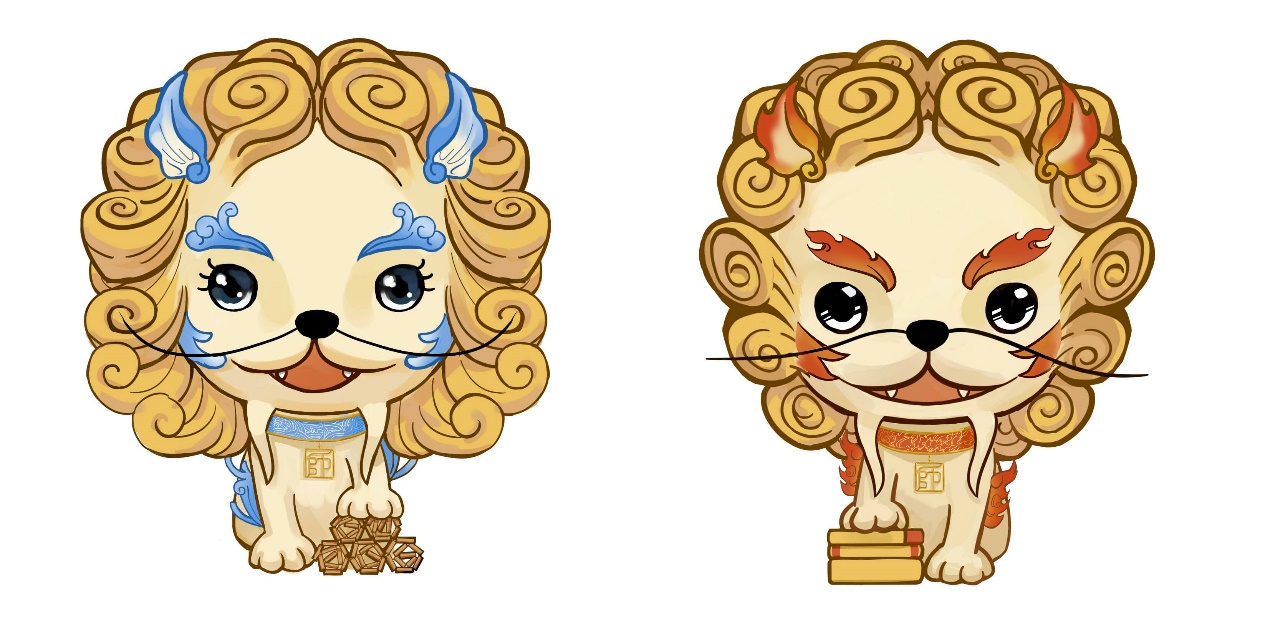 在新学年开始之际,河南师大图书馆吉祥物添加了新成员——“师小淑”。和“师小图”一样,“师小淑”由我校美术学院2016级毕业生崔煜浩设计,同“师小图”一样,它们都源于我国传统石狮子形象。“师小淑”的耳朵、眉毛、项圈、纹饰等用蓝色和波浪纹代表知识的海洋,“师小淑”左脚下是竹简,代表着知识,也同“师小图”右脚下的现代书籍相呼应。同时,为了迎接“师小淑”的到来,也对原有“师小图”形象进行了优化升级,用红色和火焰纹代表智慧的火焰。使“师小图”和“师小淑”更能代表图书馆这个知识和智慧的宝藏。
