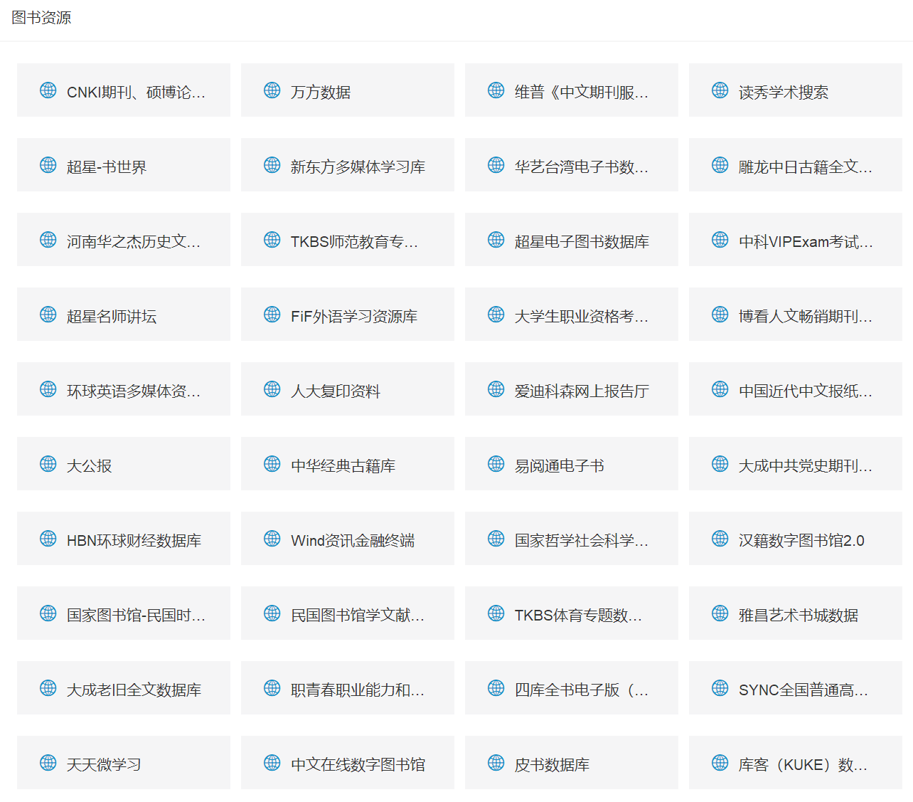 此VPN1使用方式与财务、OA和教务等使用的VPN有所不同,所有图书馆的资源均以列表方式提供,点击列表中的资源链接,就可以使用,不能脱离VPN页面新开浏览器或者页面。