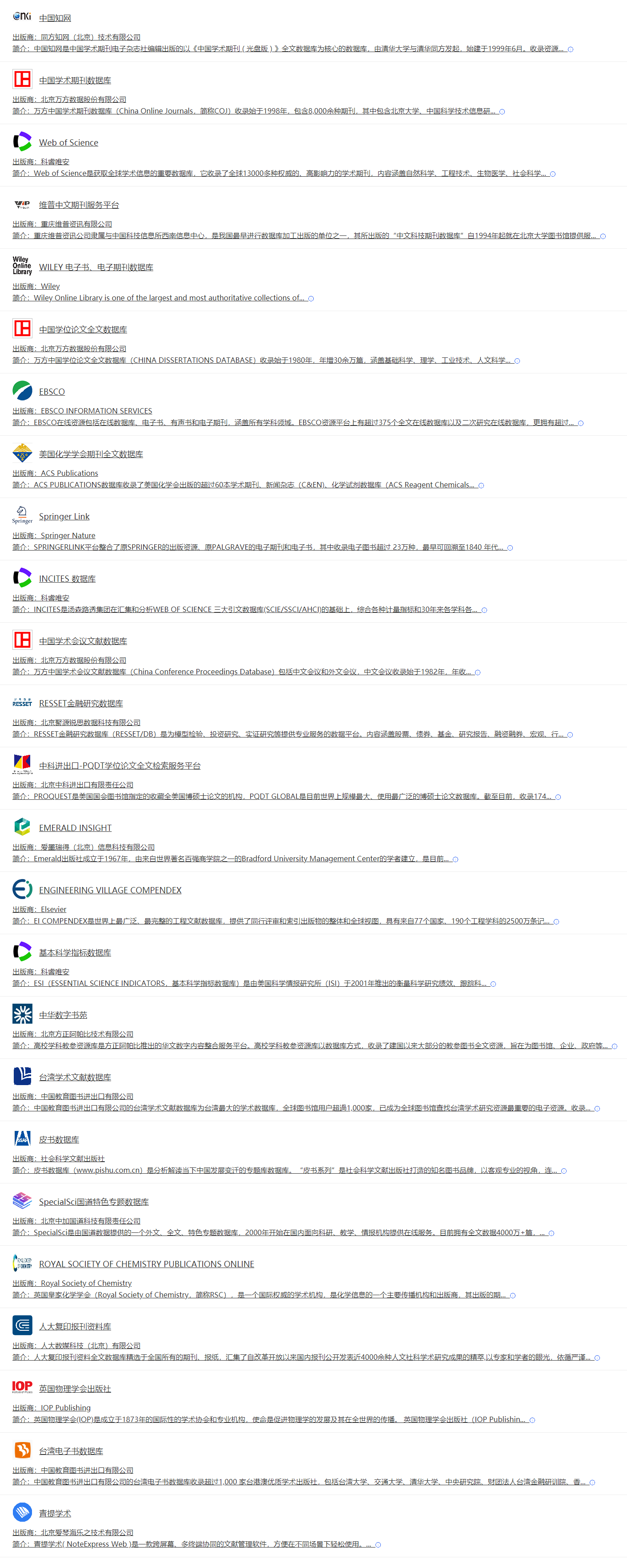 选择Don not ask me again,以后再访问此数据库,就自动跳过此步骤,点击Accept,即可列出我校目前订购且被支持登录的产品,共计25项*,找到: