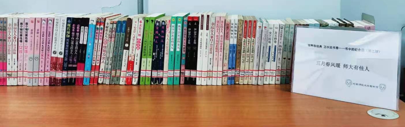 为了体现图书馆对女教师、女学生的特别关爱,庆祝“三八妇女节”的到来,“牧野存经典 卫水流书香——书中的纪念日(第二期)”特推出“三月春风暖 师大有佳人”系列图书。我们精选了关于养生、仪表、健康、运动、励志的精品书籍40余种,引导全校女性充分发挥“自尊、自信、自立、自强”的精神风貌,全面提高自身素质,自身修养,做社会文化进步的推动者。这些书籍已经摆放到图书馆流通部4楼展台,期待美丽的您将它带走!