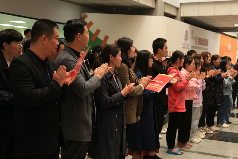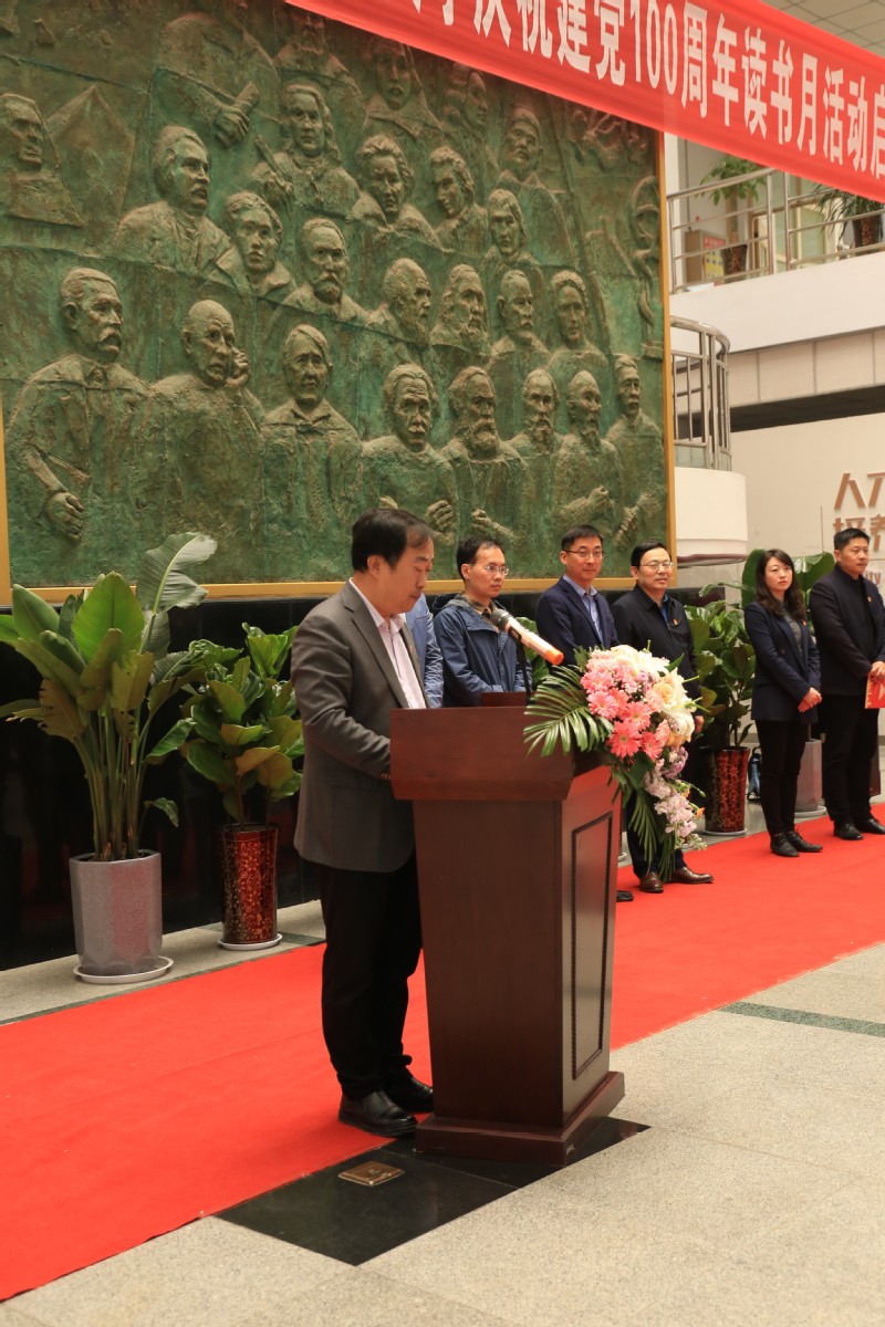 温党史辉煌,沐卫水书香。4月23日上午,在第26个世界读书日来临之际,伟德官网下载苹果版庆祝建党100周年读书月活动在图书馆二楼中厅正式启幕。本届读书月活动由图书馆主办,相关校领导、宣传部、学生处、研究生院、校团委、就业创业指导服务中心、校语委、各学院主要领导、学生代表及社会媒体参加启动仪式,仪式由图书馆党总支书记王文豪主持。
