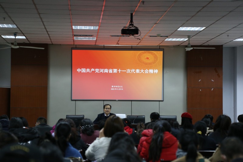 11月9日下午,图书馆在二楼报告厅召开全体教职工会议,传达学习中国共产党河南省第十一次代表大会精神。会议由党总支书记王文豪主持。