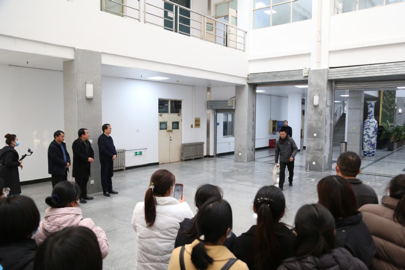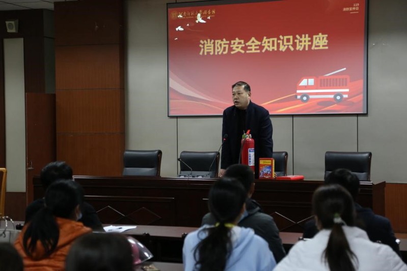 会议共有三个议程:首先,图书馆邀请了保卫处消防科蔡鹏为全体职工做了消防安全知识讲座。大会上,蔡鹏介绍了灭火器、防毒面具等常用消防工具的使用方法,通过讲解火灾案例,讲述了消防安全的重要性,同时就防火、灭火、逃生、自救等方面进行了详细阐述,并带领全体职工在图书馆二楼大厅进行了灭火的实操演练。