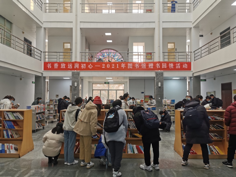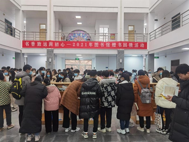 为了回馈读者,实现资源共享,2021年12月9日,图书馆在二楼大厅举办了“书香致远润初心—2021年图书馆赠书回馈活动”。