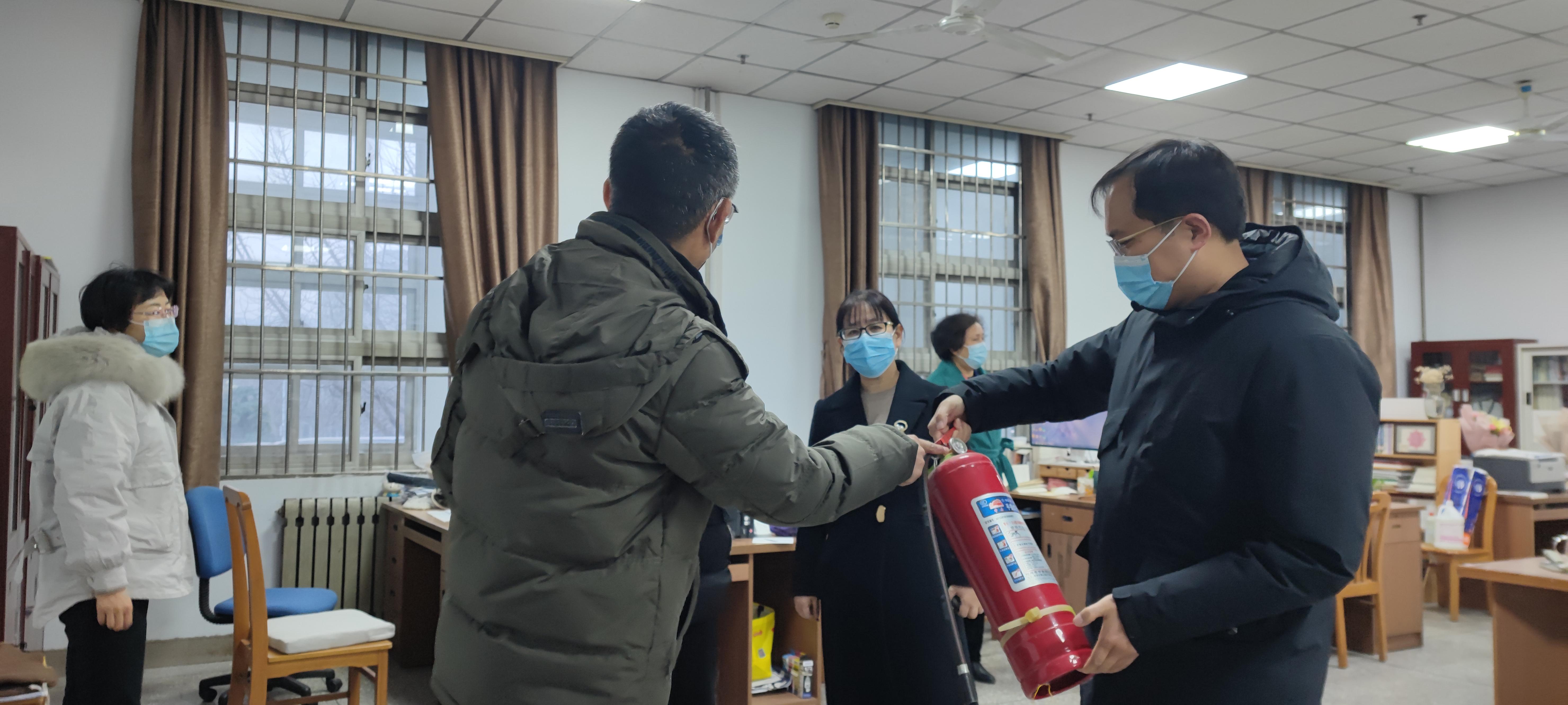 1月7日下午,图书馆总支书记王文豪、馆长崔宗超带队开展假期前消防安全专项检查活动。