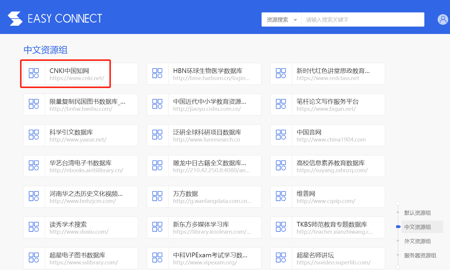 访问方式同样需要直接点击VPN工作页面提供的资源列表。