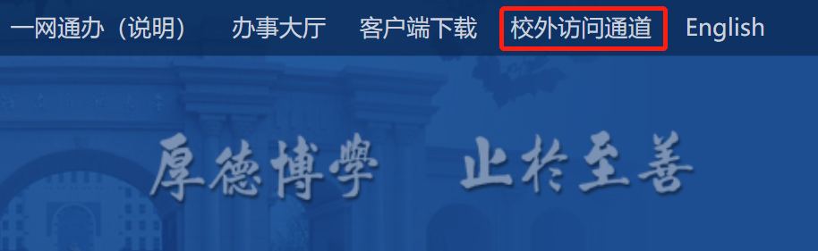 访问入口在校园网主页右上方:“校外访问通道”