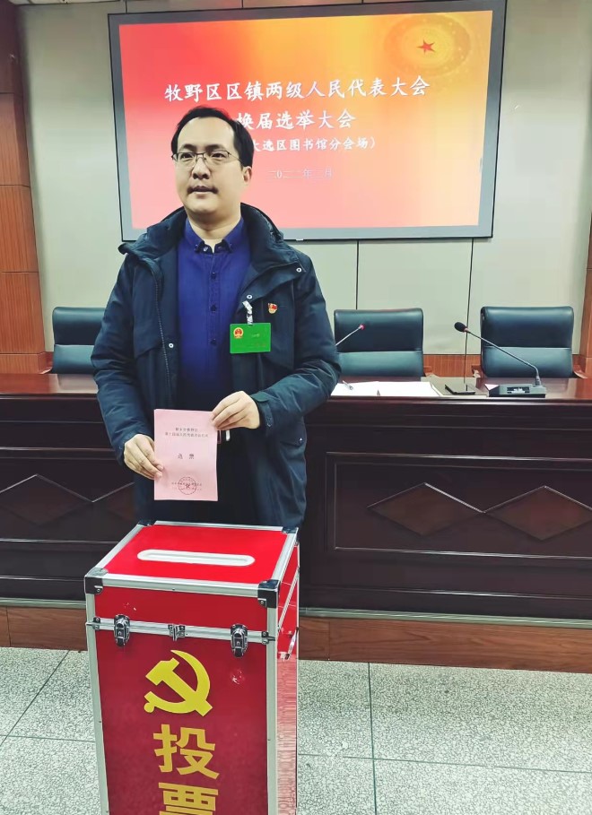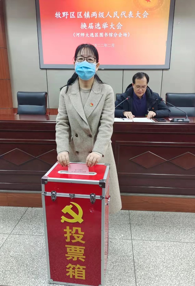 王文豪介绍了伟德官网下载苹果版选区人大代表正式代表候选人及基本情况,并强调了填写选票的方法和有关注意事项,图书馆选民按照选举工作流程逐一将选票投入投票箱中。