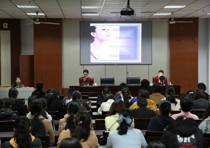 为庆祝“三八国际妇女节”112周年,营造尊重、关爱女性的和谐校园氛围,丰富女教职工的文化生活,图书馆分工会于3月8日下午特邀到专业的美容化妆讲师安娜前来授课,为我们讲解一些化妆的技巧以及步骤。讲座由图书馆分工会主席王瑞珍主持,全馆女职工参加了此次讲座。