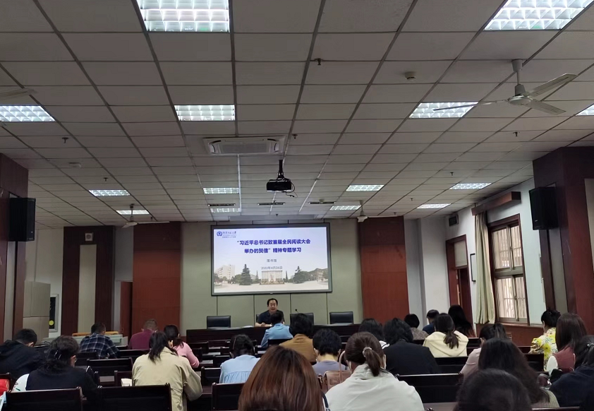 4月26日下午,图书馆在二楼会议室召开会议,集中学习“习近平致首届全民阅读大会的贺信”精神。图书馆全体职工参加专题会议,会议由图书馆馆长崔宗超主持。