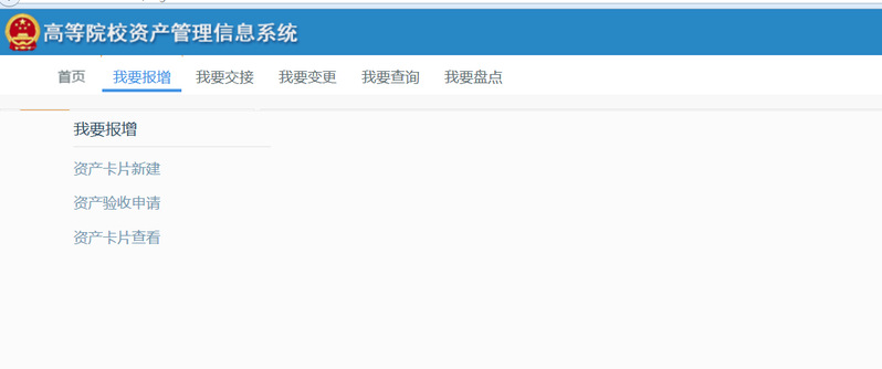 点击首页【我要报增】→【资产卡片新建】进入登记页面,随后选择需要进行登记的资产类型,完善资产卡片信息,点击保存。