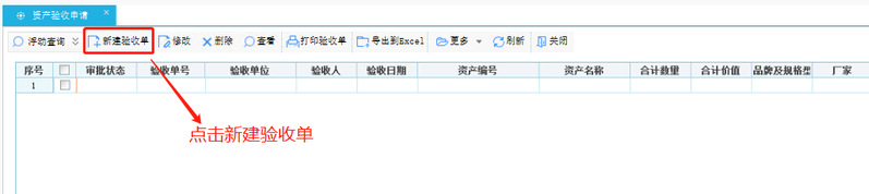 点击首页【我要报增】→【资产验收申请】→【新建验收单】→完善表单表头信息→点击表体的【选择卡片】进行卡片选择→点击【附件材料】可上传资产相关证明材料→【保存】→【提交】审核。