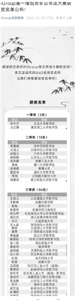 近日,iGroup第一届馆员冬日书法大赛活动落下帷幕。图书与信息档案中心在此次比赛中喜获佳绩。
