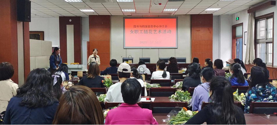 为更好地丰富图书与档案信息中心女职工精神文化生活,活跃中心文化氛围,陶冶职工情操,中心工会于3月14日下午在二楼会议室组织开展“情暖三月,花漾生活”中国传统艺术插花体验活动。本次活动邀请了专业花艺老师现场授课,中心共计 40余名女教工参与体验。