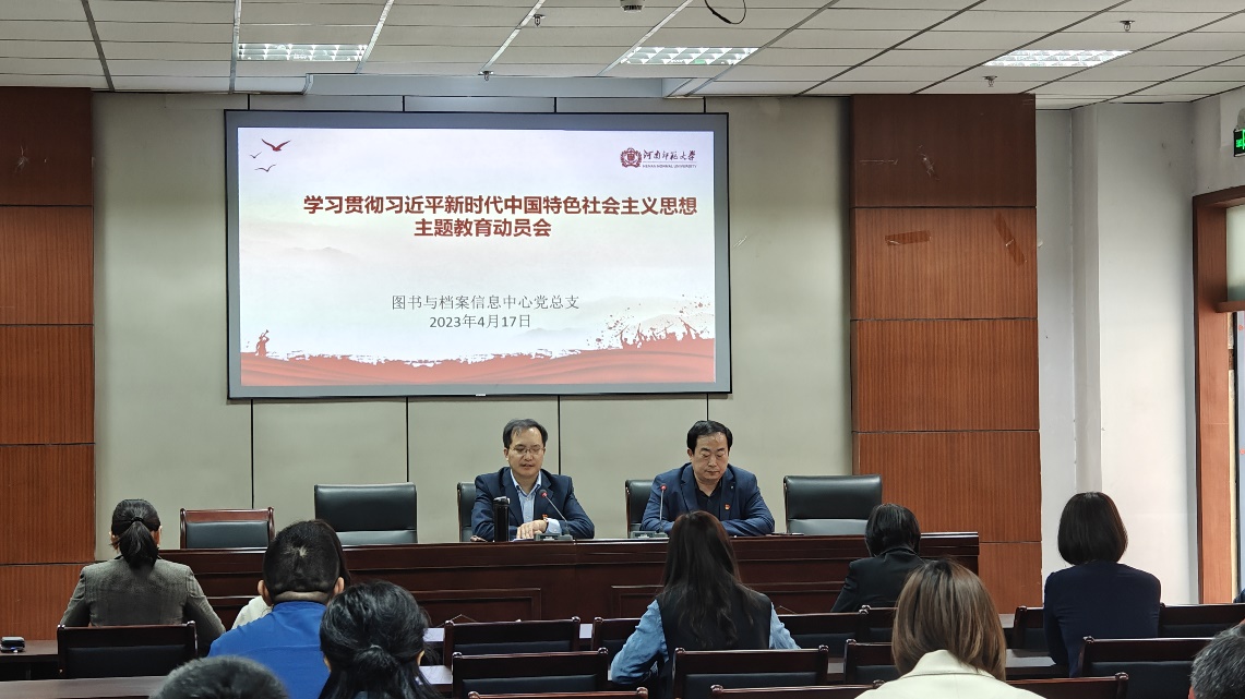 遵照校党委印发的《关于在全校党员中深入开展学习贯彻习近平新时代中国特色社会主义思想主题教育的实施方案》通知要求,4月17日上午,图书与档案信息中心党总支在二楼会议室召开学习贯彻习近平新时代中国特色社会主义思想主题教育动员会。中心党总支委员、党政领导班子成员、全体党员干部参加会议,会议由中心党总支书记王文豪主持。