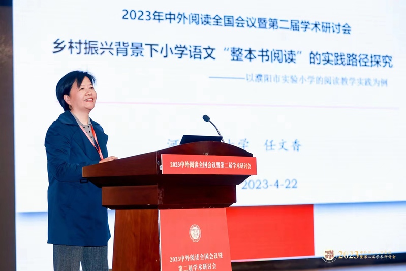 此次会议的主题聚焦“阅读助力乡村教育·书香推动乡村振兴”。4月22日,任文香向大会作《乡村振兴背景下小学语文“整本书阅读”的实践路径探究——以濮阳市实验小学的阅读教学实践为例》的主旨报告,深入探讨小学语文“整本书阅读”的实践路径,旨在为我国语文教育添智增慧。郑爽、武风云在“分论坛研讨”中分别汇报了各自提交的会议论文《书香校园建设视域下的高校图书馆阅读推广:角色、价值、路径》《语文核心素养视阈下“文学阅读与创意表达”的策略探究》。