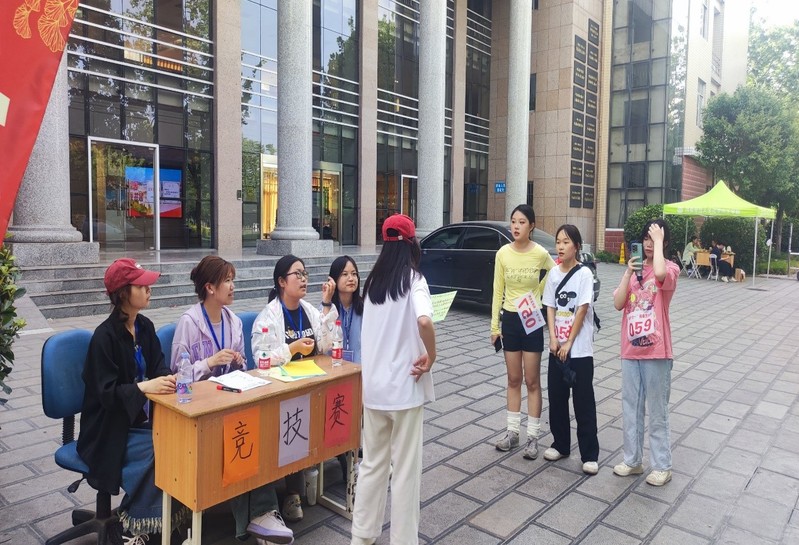 活动分为上、下午各两场,参与同学自由组成四人小队,于开始前30分钟在图书馆门口集合并抽取线路号及小组号。上午9:00活动正式开始,各小组领取打卡表,按所抽取路线依次打卡。活动共有三条路线,摊位布置有“看图识地、正话反说、巧接古诗词、是或不是、绕口令、你画我猜、诗词接龙、听歌识曲”八项妙趣丛生的小游戏。各小组游戏通关后,由对应摊位志愿者在表格上盖章。最后,负责人员根据各小组全程所用时长评出名次,在活动结束后颁发奖励。同学们携友同游,在奔跑中感悟青春,在游戏中同享书籍之趣。