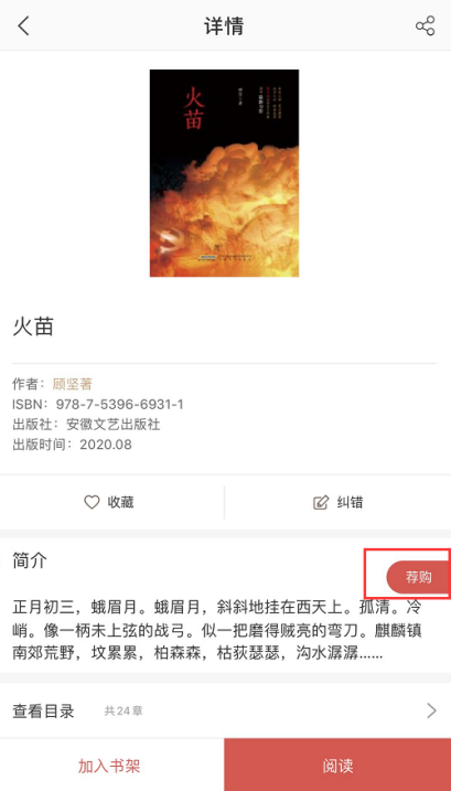 (3)APP端首页--点击书城-进入详情页-可以试读、加入书架、荐购