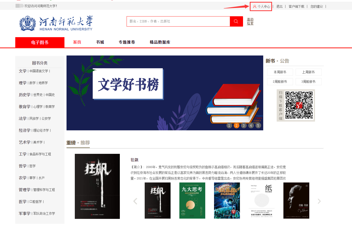 (1)校园内,在IP范围内无需登录可直接阅读电子书,但是该方法没有个人中心记录。