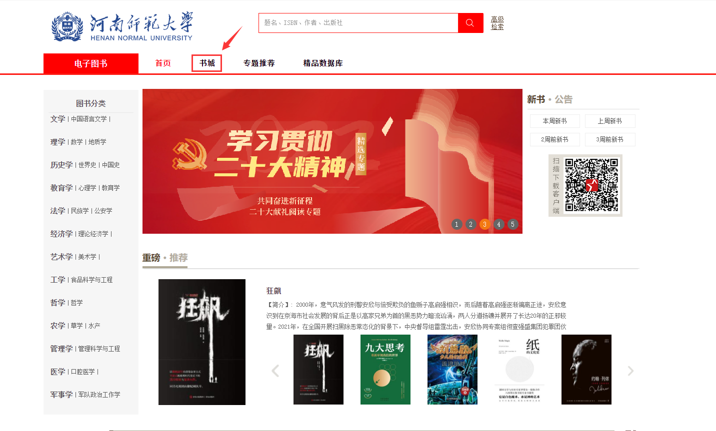 目前我馆开通的畅想之星精品数据库电子书数量为20多万种,在首页“精品数据库”中可检索及阅读全文电子书。内容覆盖了文学、理学、历史学、教育学、法学、经济学、哲学、农学、管理学、医学、军事学11个一级学科,涵盖学术专著和畅销阅读作品。