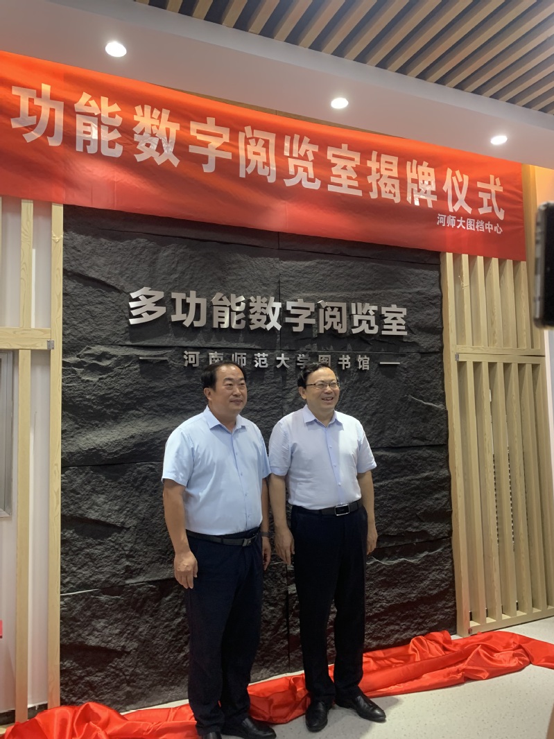 李雪山和图书与档案信息中心主任崔宗超共同为多功能数字阅览室揭幕。