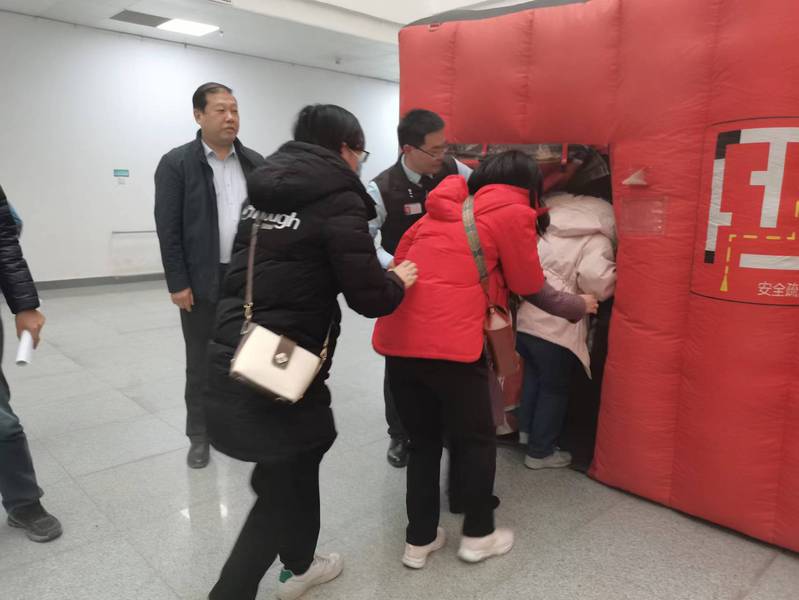 竞赛结束后,全体职工在校保卫处的统一安排下,有序前往图书馆二楼大厅开展消防实操演练。在认真听取消防科科长程习伟的讲解与实地观摩后,每位职工亲自体验了火灾现场逃生与消防器材操作的全过程。此次演练将抽象的安全意识转换为具体的实战演习,大大增强了中心职工的安全意识和自护自救能力,培养了广大职工在紧急遇险时互帮互助、并肩作战的精神。