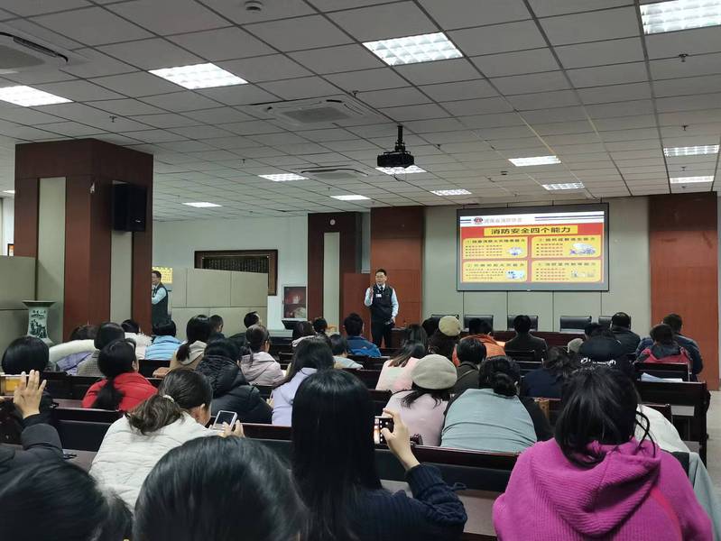 新乡市消防协会教员杜通首先应邀开展消防安全知识讲座。杜通教员结合近年来国内诸多高校发生的典型火灾案例,配合一幅幅触目惊心的图片,一段段发人深省的视频,向中心全体职工普及了消防安全知识,介绍了火灾现场逃生技巧,并现场演示了烟雾报警器、灭火器、灭火宝、灭火毯等消防器材的正确使用方法,使全体职工树立了正确的消防安全理念,增强了火灾防范及应急处置能力,提升了应急自救和逃生能力,为中心营造了良好的消防安全环境。