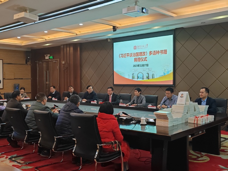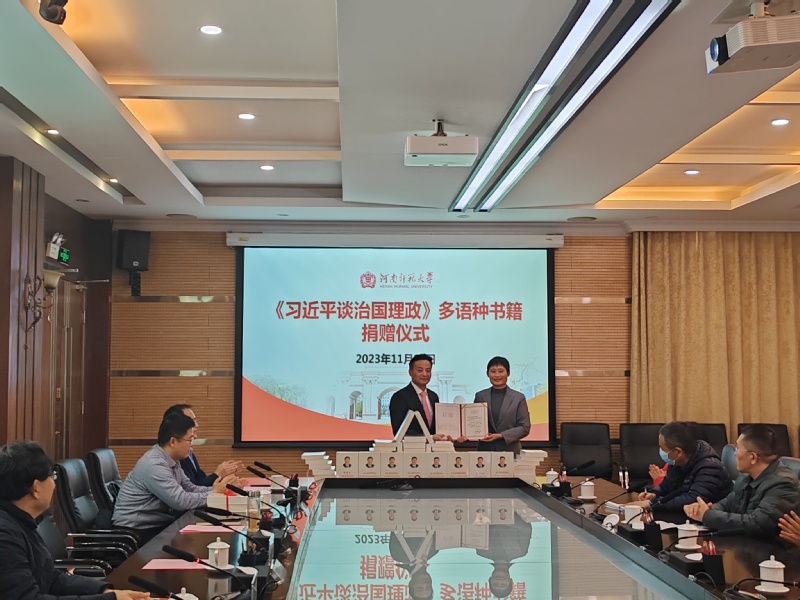 据悉,北京崇学文化发展有限公司向我校捐赠《习近平谈治国理政》英、法、俄、阿、西、葡、德、日等多语种版本书籍共计270册。