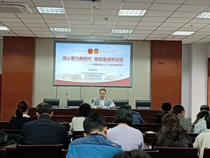 4月11日下午,在图书与档案信息中心二楼会议室,全体职工集中学习2024全国两会精神,中心党总支书记王文豪围绕“凝心聚力新时代 砥砺奋进新征程”——十四届全国人大二次会议精神开展宣讲。