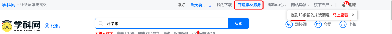 注册后 点击“开通学校服务”按钮,有学科网的师生可直接点击“开通学校服务”按钮