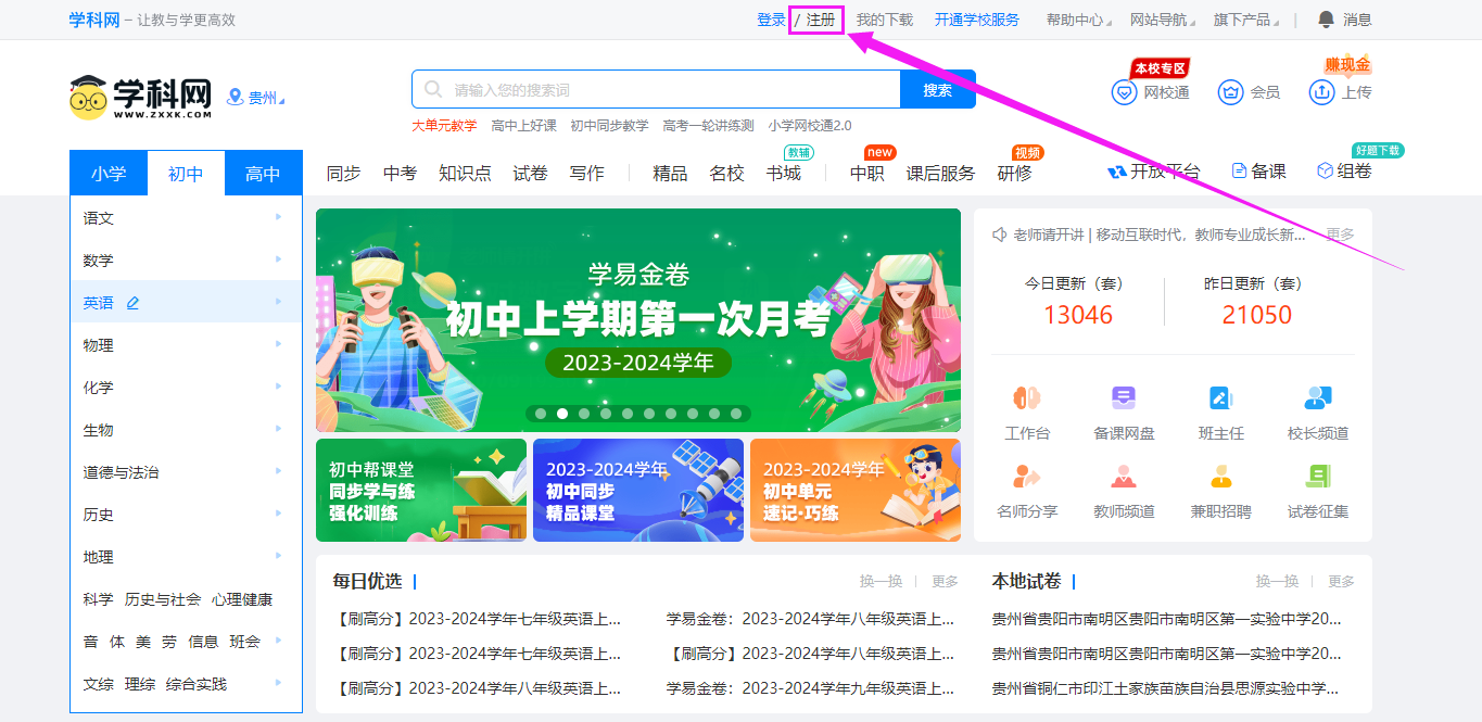 进入网址:www.zxxk.com 点击注册,获取学科网账户