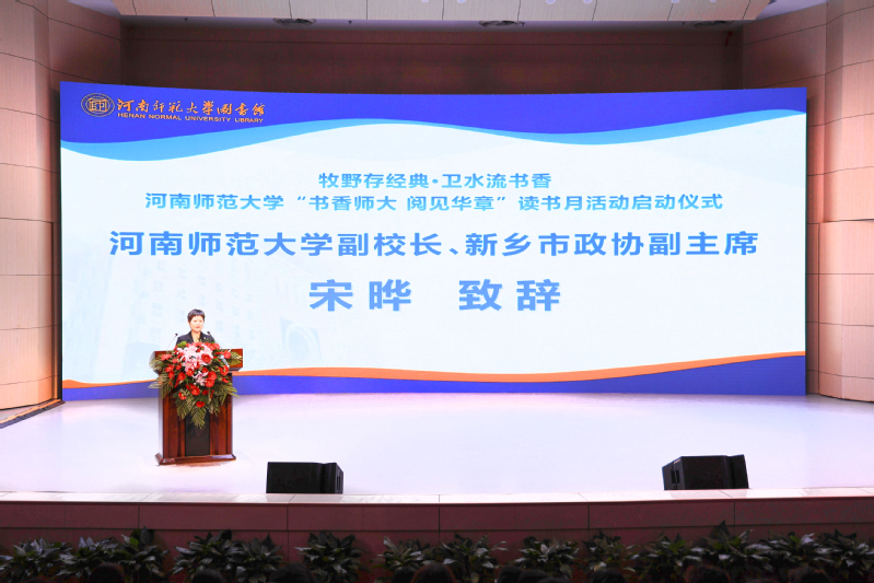 副校长宋晔在致辞中表示,推动全民阅读是赓续中华文脉、建设中华民族现代文明的重要举措。以习近平同志为核心的党中央高度重视全民阅读工作,“全民阅读”已连续11次写入政府工作报告。她强调,书香校园建设是推进全民阅读工作的重要环节,大学图书馆是书香校园建设的主阵地,要求真务实,开拓创新,充分发挥文献信息中心、教研支持中心、文化教育中心的保障作用;并号召师大学子都能与书为友,守正创新,传承深厚绵长的学术命脉,传播博厚悠远的书香文化。