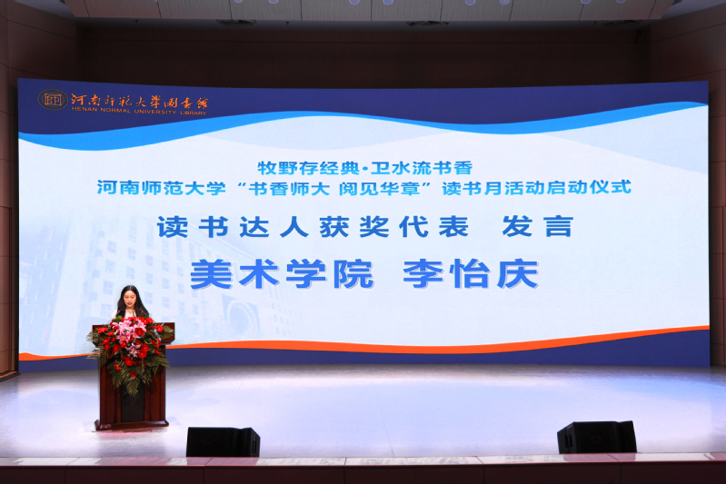 河南省高校图工委主任崔慕岳在讲话中表示,长期以来,河南师大图书馆积极投身书香校园建设,涵育校园阅读风尚。全面落实立德树人根本任务,扎实建设阅读资源、创新提供阅读服务、打造舒适阅读空间,有效发挥了高校图书馆在全民阅读体系中的阵地作用,为弘扬师大学风、开展社会服务、传承中华文化做出了贡献,在河南省图书馆界起到了良好地阅读推广示范效应,蝉联河南省全民阅读先进单位。