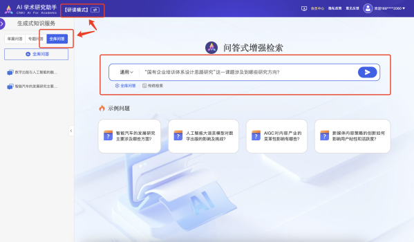 学术问答:分为全库问答和新鲜问答两种模式。在全库问答模式下,AI 助手将在知网全库范围为用户寻找精准权威的体系化解答。当用户希望在最新的研究成果中生成答案时,可一键切换至新鲜模式。新鲜问答模式基于近十年发表的文献资源,生成最新的回答,让用户轻松把握前沿知识。