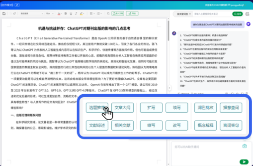 智能伴写:在论文的撰写中,用户可以需要根据需要选择扩写、续写、缩写、改写、概念解释、中英翻译等功能,来启发灵感,提高文章的可读性和吸引力。