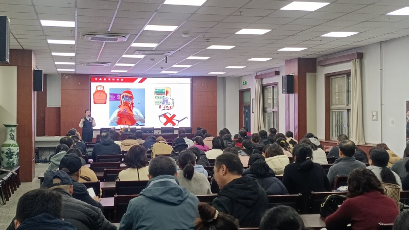 随后,河南省消防协会消防宣传专职教员严寒通过分享一系列近年来发生的典型火灾案例,让在场的每一位教职工深刻认识到火灾的无情和消防安全的重要性。严寒教员还详细讲解了灭火器、灭火毯、消防面具等常见消防器材的操作步骤,火灾预防的基本知识,包括电气设备的正确使用与维护、易燃易爆物品的管理、日常办公中的火灾隐患排查等内容,并介绍了火灾发生时的应急处置方法。