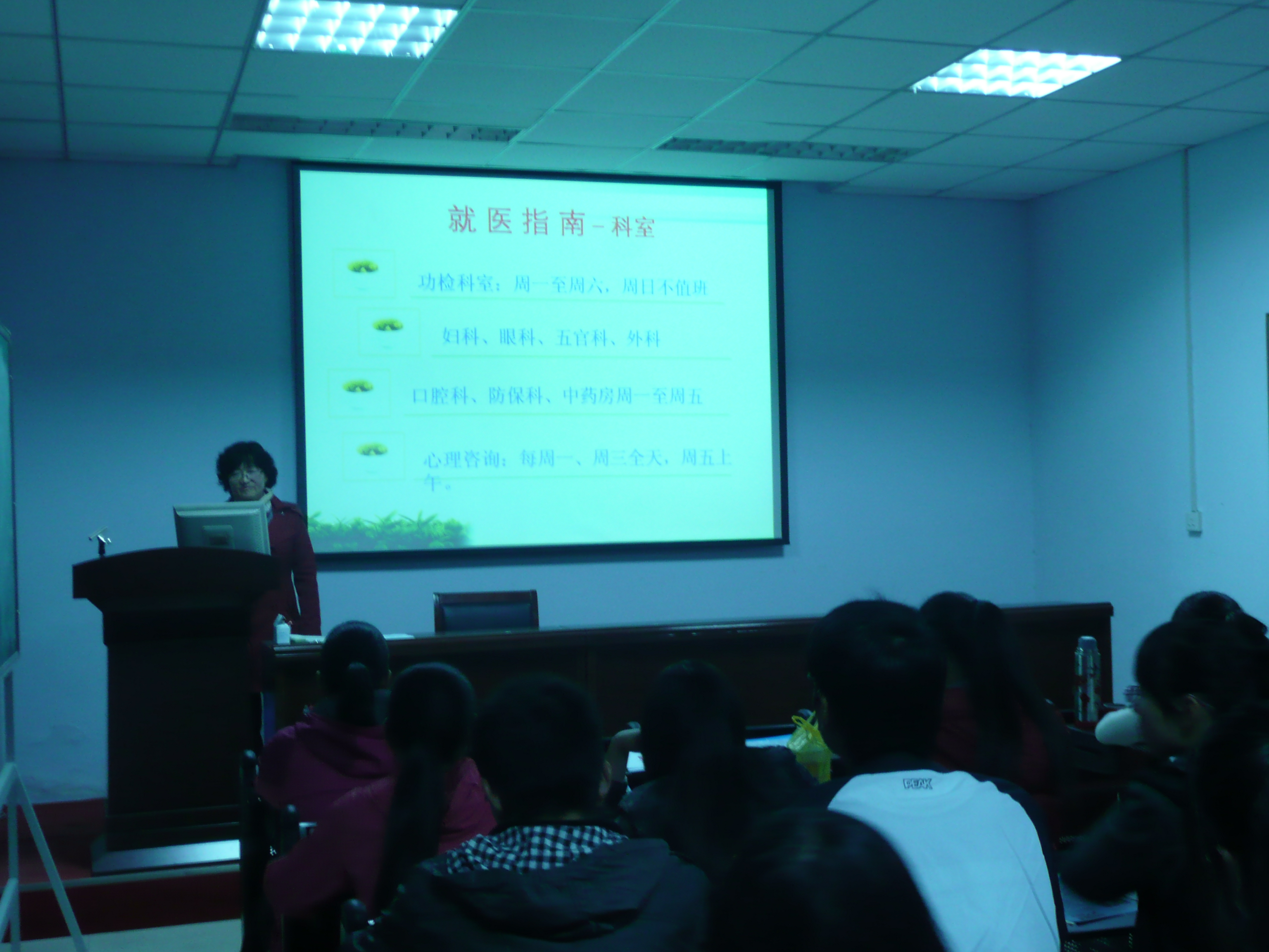 开展健康讲堂,架起健康桥梁。11月1日下午,旅游学院特邀校医院内科主任、副主任医师皇甫秀荣,医师朱芳、贾喜臣在旅游学院会议室举行健康知识讲座。旅游学院2012级辅导员王方语及旅游学院、历史文化学院学生代表共同参加了此次讲座。